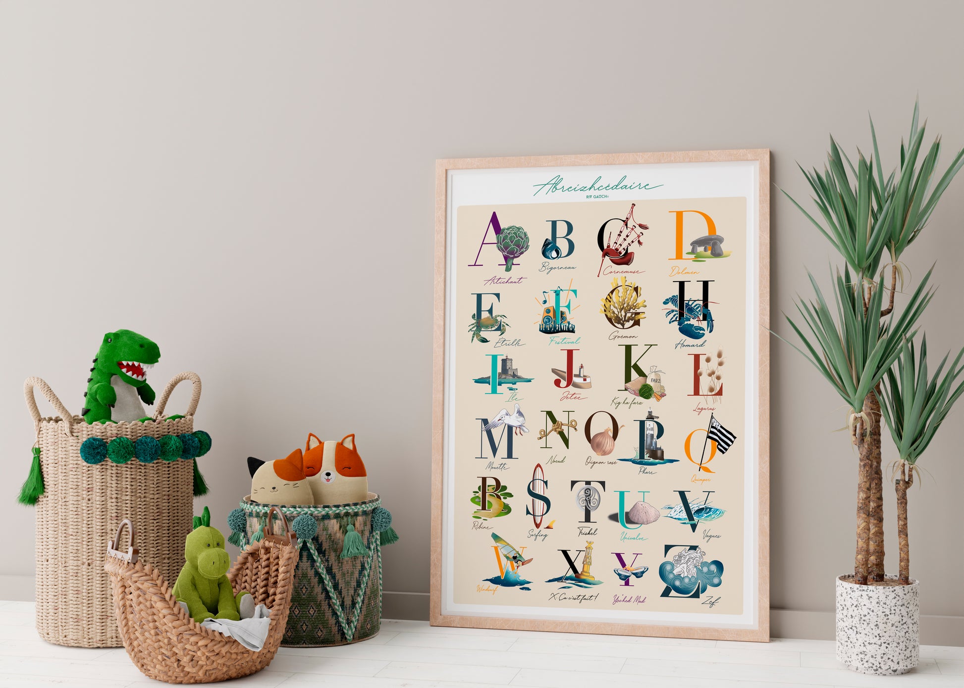 Fruit de mois de recherches, d'esquisses et de réflexion pour vous donner en une affiche le meilleur de la Bretagne ! Idéale pour nos petits lecteurs en herbe qui commencent à lire, idéale pour faire découvrir ou vous rappeler notre si belle région, elle trouvera une place idéale dans vos intérieurs.
